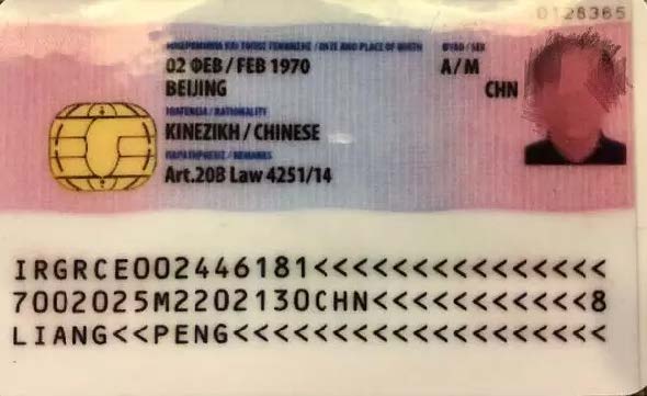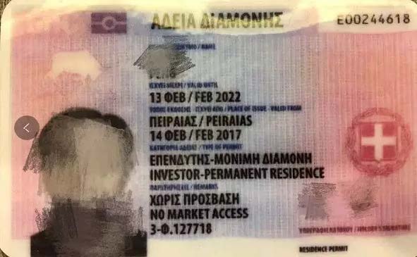 希臘永居卡(卡上有清晰的標(biāo)注:投資者永久居留Investor-Permanent Residence);